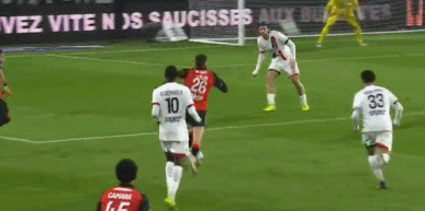 第34分钟,努诺-门德斯后场解围失误,塔马里右路突破,晃开帕乔果断兜射,萨福诺夫鞭长莫及,雷恩打破僵局,1-0!
